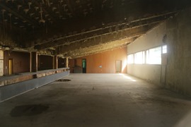 Interiormente, se compone de un amplio vestíbulo para la recepción de los nuevos residentes y oficinas generales, que se accedía a través de un gran porche. Alrededor de él aparece una sala polivalente en el ala oeste con grandes ventanales, una centralita telefónica, estación megafónica, servicios de administración y oficinas, botiquín, almacenes y alojamientos para el personal de administración y dirección del complejo. El conjunto se remata con un ala curvo que da a la calle Avilés y que alberga una cafetería con amplia terraza y varios locales comerciales.